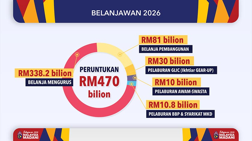 KUALA LUMPUR: Kerajaan telah memperuntukkan sejumlah RM470 bilion untuk Belanjawan 2026, dengan peruntukan RM338.2 bilion untuk perbelanjaan mengurus, dan RM81 bilion untuk perbelanjaan pembangunan.