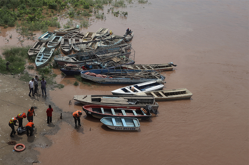 BBC turut melaporkan keadaan menyayat hati apabila sebuah bot membawa lebih 20 mangsa, termasuk seorang wanita yang mendukung bayi berusia dua bulan, melalui arus deras berwarna coklat.