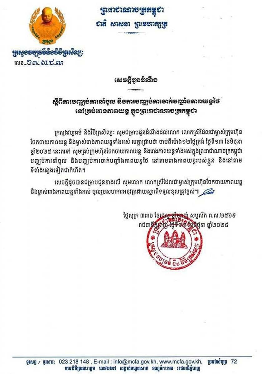 Pagi semalam, tanggal 13 Jun 2025, satu kenyataan dibuat oleh kerajaan negara Kemboja.